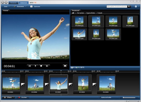 Pictomio是一个类似于Picasa的图片/视频浏览和管理软件,提供了媒体库、评分、EXIF信息编辑以及一系列其他实用的功能。不过与Picasa相比,Pictomio的效果要华丽得多,这也是它最令人心动的地方。Pictomio提供了类似于Picme的华丽3D图片浏览效果(Pictomio凭借着这华丽的3D效果,已经占据了无数朋友的桌面了呢!),并且还内置了漂亮的SlideShow制作工具,其效果甚至不亚于专业级的Flash相册制作工具——Flash SlideShow Builder。Pictomio三维的浏览方式和平滑的图片转场效果为浏览照片带来了更多乐趣与更生动的体验
