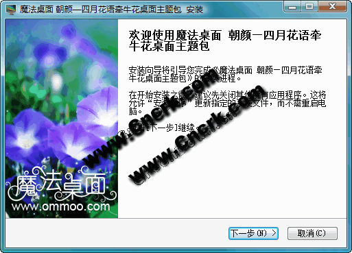 魔法桌面原创朝颜—四月花语牵牛花桌面主题,本主题用紫色与蓝色的牵牛花做壁纸,小小的一朵一朵,随着朝阳开放,给你清晨的第一个微笑