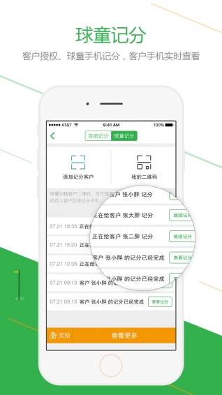 我们为高球玩家提供了ERP式高球管理服务:球场订场、球队活动报名、智能分组、实名交友、实时记分、成绩直播、相册管理、记分卡统计分析......一键搞定!