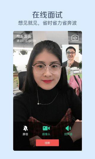魔方面面以视频面试作为突破,将整个招聘流程线上化,为求职者和招聘企业节约成本,提高了找工作和招聘的效率。魔方面面打破传统的招聘方式,发布职位,投递简历,简历筛选的界限,将招聘的产业链向更加纵深推进。找工作更方便,求职者和招聘企业实现线上交流,免费电话,视频面试,将面试邀约,时间确定,在线面试,面试流转,结果评定,Offer发放,将找工作的流程全部线上化。