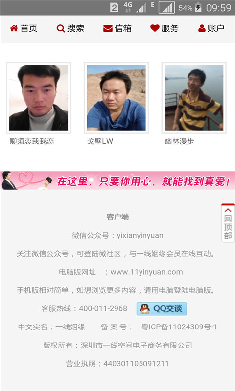 找对象,上线一线姻缘;一线姻缘,只为找对象。欢迎大家下载一线姻缘手机APP,我们会努力让每个会员找到真爱!