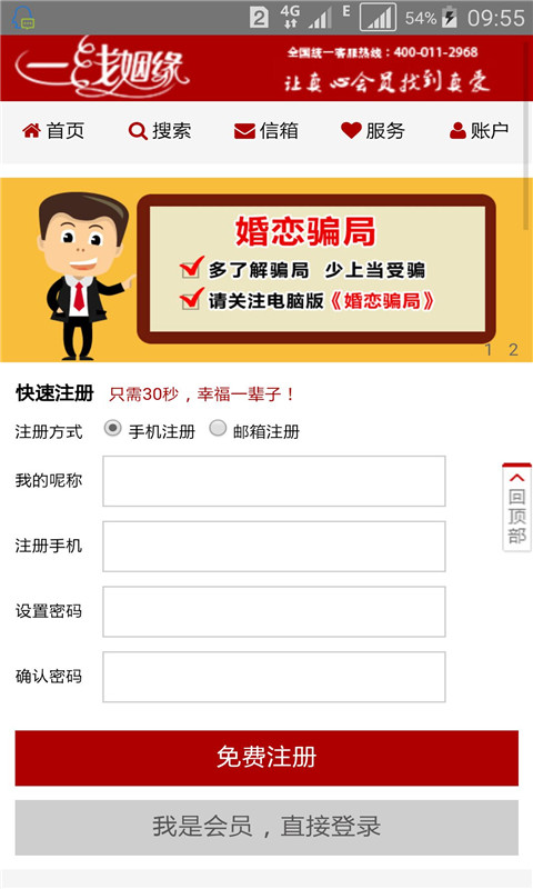 网站自身不会注册虚假帐号、也不会用系统造假;重视婚恋安全,对骗子和婚托零容忍。