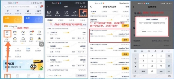 2. 选中顾客订单,点击“揽收”,随后询问客户寄件码或自行输入寄件码。