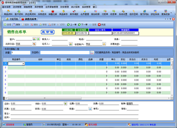 6.系统管理:修改操作员密码,用户权管理,系统设置等。
