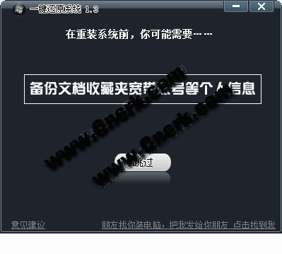 一键还原系统 V1.3 简体中文绿色免费版 一键还原系统是一个小巧的绿色版本一键还原windows系统软件。