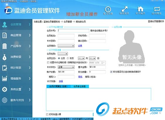 蓝迪会员管理系统是一款功能强大,操作简便的会员管理软件。是企业进行会员制管理、会员卡管理、会员积分管理、会员消费管理、连锁会员管理、连锁积分管理的必备工具。能满足商场、超市、美容美发店、足浴、KTV酒吧、按摩保健、汽车美容销售、餐饮酒店、体育场馆、培训班、健身房等多种不同场合的需求。加之短信群发、邮件、网站整合、定制开发等系列配套技术以及对刷卡器、打印机、POS机器、钱箱、客户显示屏等外围设备的完美支持,为中小企业提供全套完整会员制营销解决方案!【软件特点】
