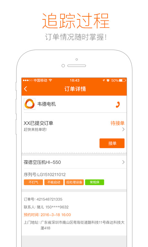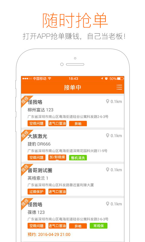 工业帮手师傅端APP是一款专为设备维修师傅推出的办公管理类手机应用,帮助维修师傅厂家直接拿货,随时随地在线抢单,订单随时掌握等服务,大大提高了他们的工作效率。