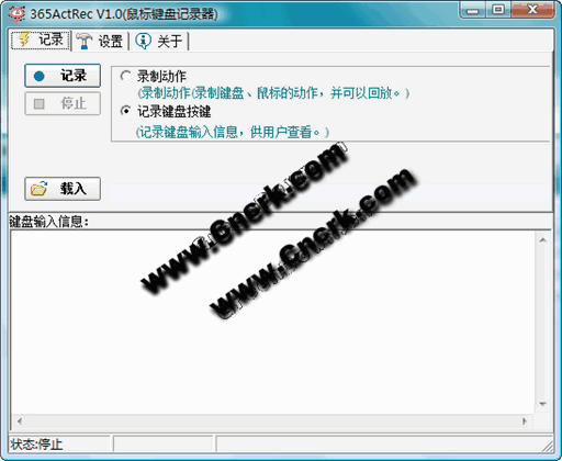 365ActRec(鼠标键盘记录器) 可以记录键盘、鼠标的动作并可以回放;可以记录键盘输入信息,供用户查看。 ·录制键盘、鼠标的动作,并可以回放。 ·记录键盘输入信息,供用户查看。