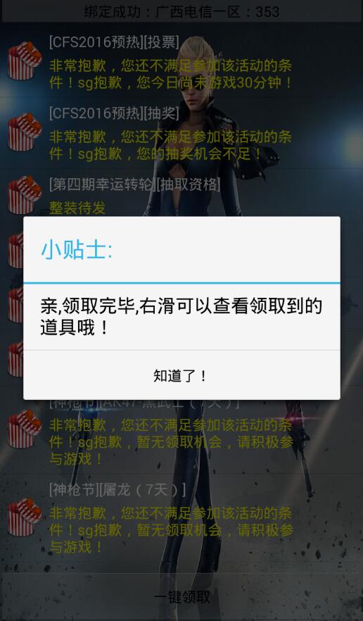 1.一键领取CF所有活动奖励与签到
