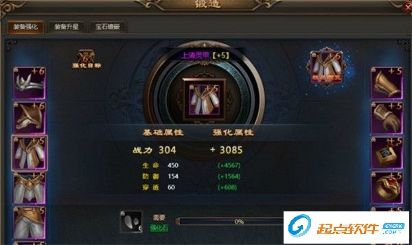 每次强化100%成功,每次成功都可以获得一定的强化属性加成,当把装备强化提升到下一个新等级时获得大量强化属性。当拥有足够的强化材料时,使用一键强化可以使这一过程更加方便快捷。