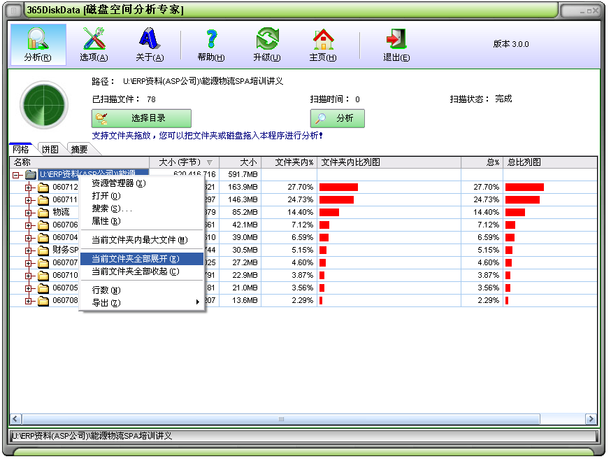 6、系统右键关联功能,快速启动并对目标文件夹进行分析;