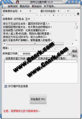 QQ轰炸机是一款QQ恶搞工具,该软件提供多窗口无人值守信息轰炸,视频轰炸,窗口抖动攻击,你可以自由选择轰炸频率,配合 变速精灵 使用,效果更“佳”。