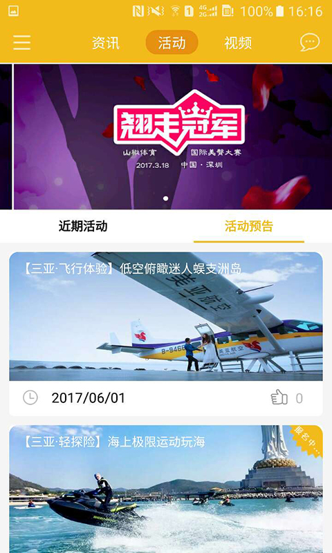 【热点资讯】每日传播海量有思想、有深度的精英类体育资讯、观点、知识、文化【活动/赛事推荐】汇聚众多优质体育活动和赛事,实时推荐,让你不错过任何一个经典赛事/活动的参与。