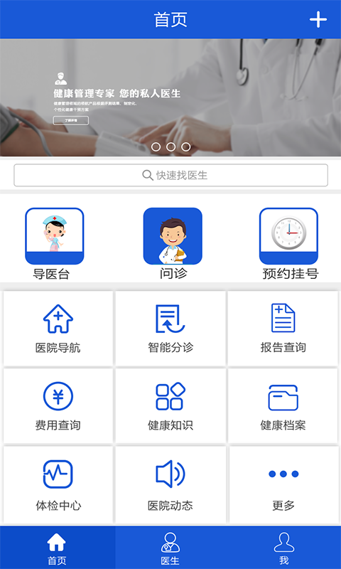 【问诊】:患者以文字、语音、视频多种手段,建立起患者与医生实时沟通的桥梁,为患者病情进行初步诊断,在线快速解决常见病、多发病,有效节省患者的时间。【导医台】:患者通过导医台,向实时在线的导医问询“快问诊”患者端具体功能,导医台还可以根据患者提供病情,向患者推荐医术精湛的医生。