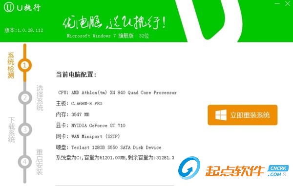 U执行一键重装系统是一款免费的系统重装软件,这款软件可以让用户不用启动盘或系统盘就能在线重装系统。就算你不懂任何重装系统的方法也无所谓,U执行一键重装系统能让你像安装软件那样重装系统,整个过程完全就是下一步可以全部解决的,推荐不懂系统安装的用户下载使用。【软件功能】