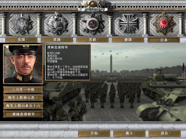 二战模式就是你负责某个国家的管理,同时,玩家可以派部队防守或进攻、占领敌方的领土。玩家可以选择5个国家共20个人物其中一个做指挥。战略地盘增加你的工业值,工业值到了一定程度,你就可以制造、升级部队,指挥部队获得胜利。