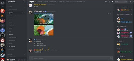 如图所示,Discord 界面非常简洁,左侧是各种功能按钮和好友列表,中间是聊天窗口,右侧则是这个服务器里面的成员。