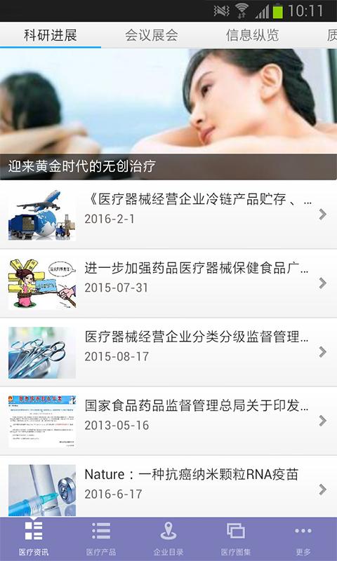 医疗器械官网客户端一直坚定地走行业、专业的信息化服务路线,以“快速对位,信息及时”为理念,从而建立起一个集快速、简捷、及时、专业、互动为一体的深度服务网站。界面流畅,操作简单,浏览方便。