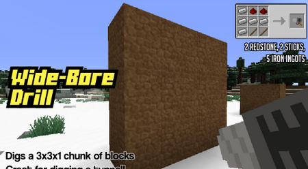 1.此MOD给游戏添加了4种工具:电钻、大型电钻、电锯、手提钻.2.此MOD添加了一种能源石油,上面说的几种工具都需要石油来维持运转,否则将不能挖掘方块.