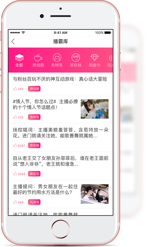 2、播霸——是为网络主播研发的直播内容解决方案。播霸为主播提供热门的话题、段子、笑话、金句、互动游戏。主播可以在播霸库挑选感兴趣的直播内容,加入到个人播单。每天直播内容5分钟搞定,让你的直播间永不冷场。
