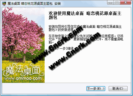 魔法桌面原创xp、vista、windows7通用版暗恋桃花源桌面主题,本主题用绿茵中的一株桃花树为壁纸,桃花树随着微风摇曳,花瓣飞落,大有落英缤纷之感,恍惚间似入了陶渊明笔下的桃花源。