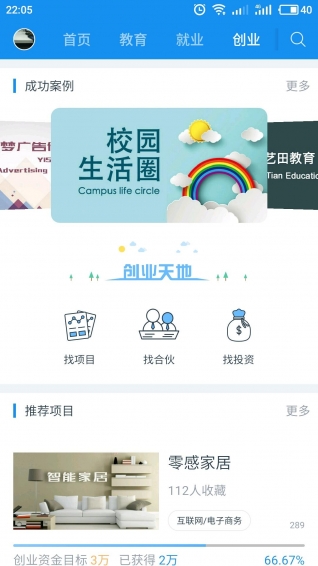 3.创业:发布属于自己的创意项目,也能找到志同道合的创业合作伙伴与天使投资人,帮助您校园创业走向成功