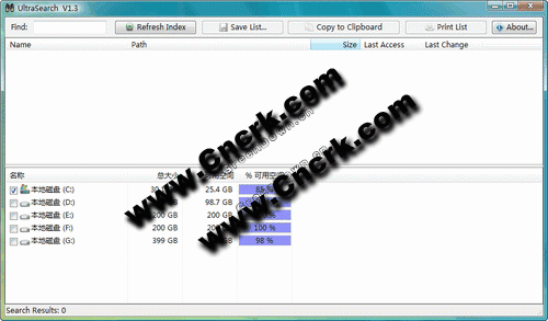 7、UltraSearch支持热键CTRL选择一个drivelist在所有驱动器。