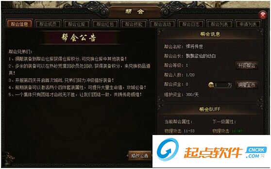 1、玩家可以查看当前帮会等级以及帮会人数