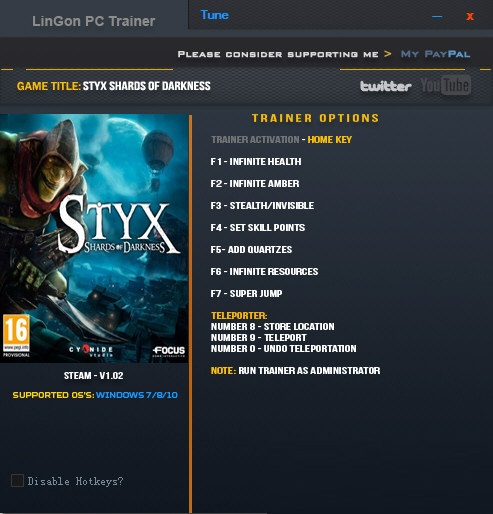 运行游戏,打开冥河暗影碎片九项修改器,按相应的热键即可