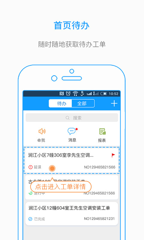 工单,一个派单派活的执行力管理平台。工单,派工派单的最佳App,是售后服务,客户服务,设备维护最高效的管理工具。工单系统入口多样化,包含:App、微信、Web后台,Web官网为用户提供便捷,为企业提供流量入口。