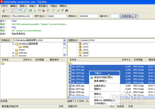 1、开启Filezilla FTP软件,连接到renderbus的服务器,此步骤同ftp上传的方法一样。