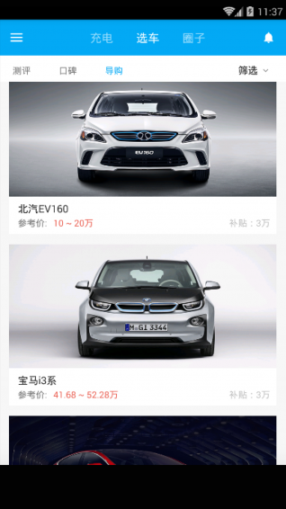 6.【选车导购】测评视频+精彩口碑,为用户提供专业的新能源电动汽车购车攻略。