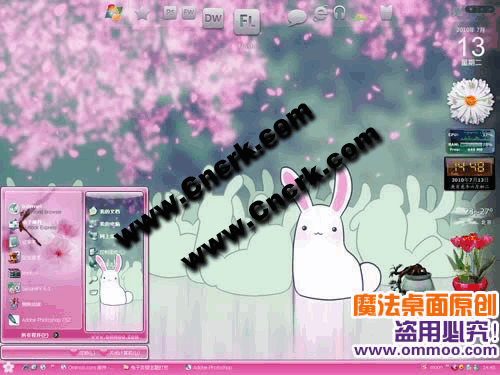 魔法桌面原创兔子赏樱电脑桌面主题,壁纸主要以粉色为主,将可爱与浪漫结合在一起,快快来体验吧