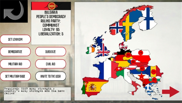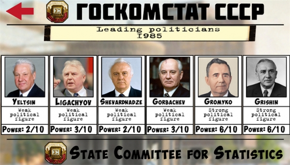 游戏开始于1985年,玩家要选择扮演叶利钦、戈尔巴乔夫或利加乔夫,然后采取各项政治经济措施,尽可能避免苏联解体和人民暴动,玩家要解决重要的政治和经济问题,并带领俄国超越腐朽西方,直到2017年。【游戏特色】