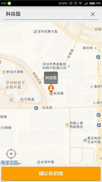 2、我们先选择我们的起始地,以“深圳市民中心”为例。搜索“深圳市民中心”,选择目的地,以“科技园”为例,搜索“科技园”。
