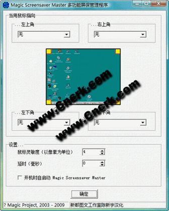Magic Screensaver Master 是一个能管理你屏幕保护程序状态的软件。仅仅需要定位你的鼠标到屏幕的特殊位置(例如左上角).它就能启动屏保,禁止屏保,关闭显示器,关机,注销,重新启动...