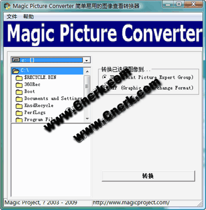 Magic Picture Converter V1.3 汉化绿色特别版 Magic Picture Converter 可以转换 BMP,GIF 和 JPG 图片格式为大多数流行的网络格式。该转换过程采用批量模式,这意味着你可以单击转换一个文件夹当中的所有图像。原始图像不会被覆写以便以后进行编辑之用。