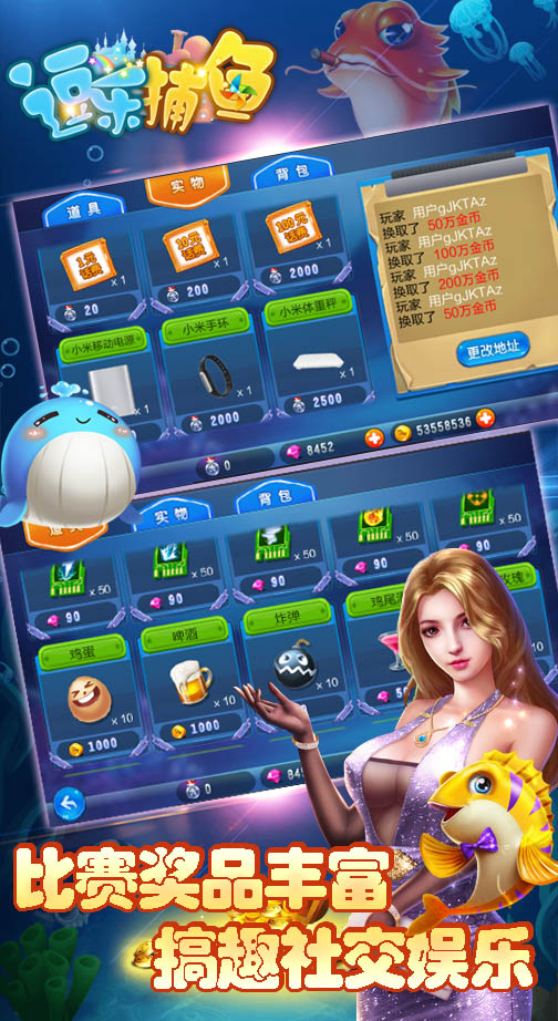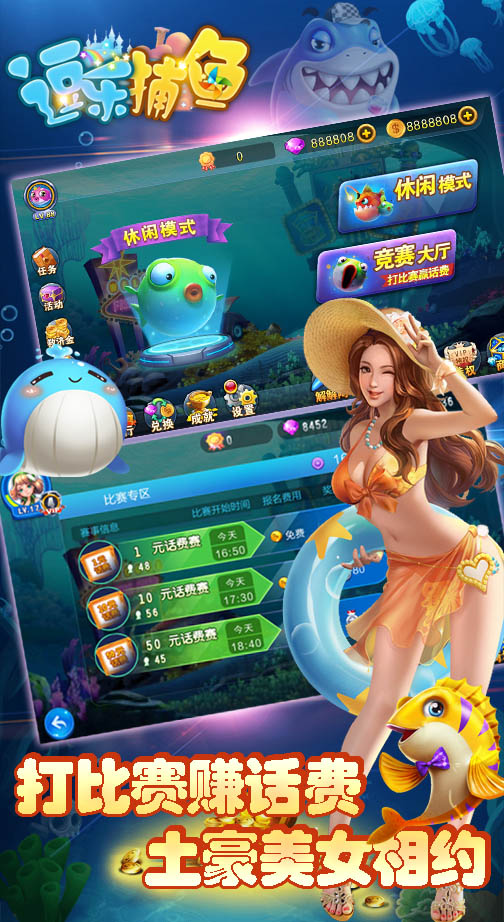3、3D超炫画面,萌爆大鱼小鱼妹子等你来围捕;