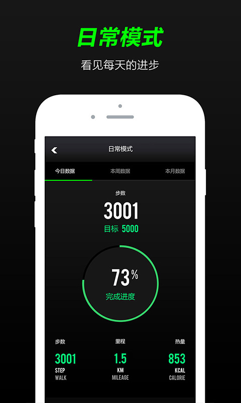 进入T-Goal应用程序日常模式,可利用T-Goal智能足球手环进行日常的跑动健身监测,生成跑动距离、体能消耗等数据,与爱跑者一起分享运动乐趣。