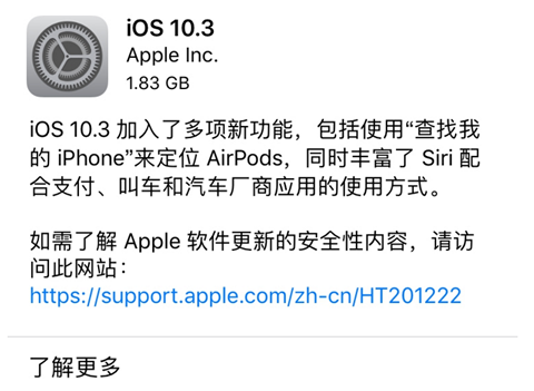 以上就是通过OTA方式完成iOS10.3升级教程,操作非常简单,在有网络的情况下,直接通过在线完成升级即可。下面我们再来介绍下通过刷机的方式完成iOS10.3升级步骤。