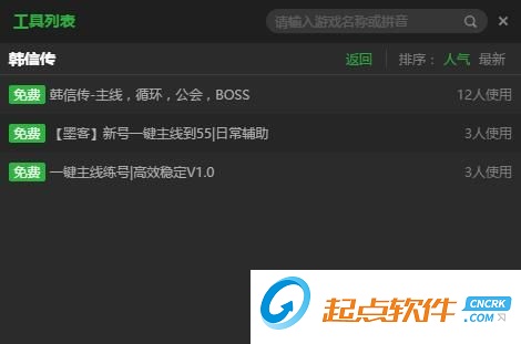 新浪韩信传辅助工具可一键主线升级,公会任务,野外boss,日常任务,自动日常活动等。
