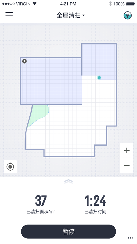4、可以启动、停止、暂停清洁和回充,还支持多种清扫模式切换——高性能清扫/节能模式