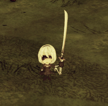 (游戏《尼尔:机械纪元》主角),异星人歼灭部队「ヨルハ部队」所属的人造人。她会使用长刀、拳套等兵器,身旁是辅助射击的机器人。剧情相关的注脚是“信念”饱食:128