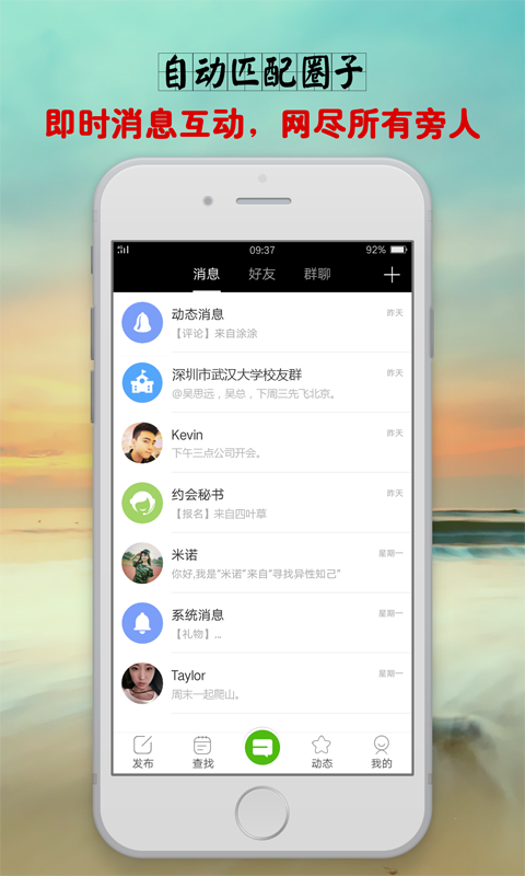 找到期待已久的共同圈子,网尽所有同城校友、老乡、同行和共同爱好人群,自动匹配圈子和群聊!