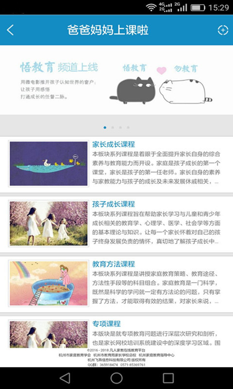 凡人家教APP是杭州飞燕信息科技有限公司开发的一款针对中小学家长的在线学习产品。产品主要实现在线培训功能,能够为家长提供基本的培训服务,让家长用户可以获得家庭教育的知识和能力。同时,在学习环节中融入提问功能,在学习的同时,答疑解惑,互帮互助。【功能介绍】