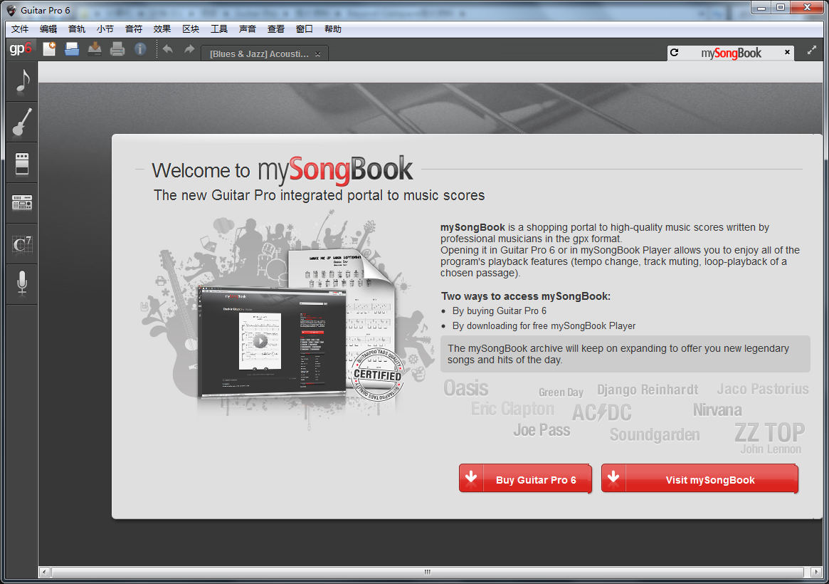 如何使用Guitar Pro打开mySongBook标签: