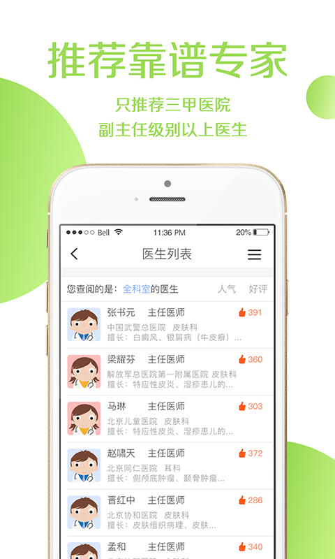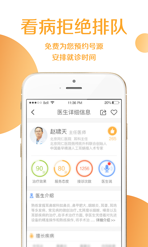 1.覆盖北京各科室知名专家号源;2.提供疾病在线问诊,专家直接解答;