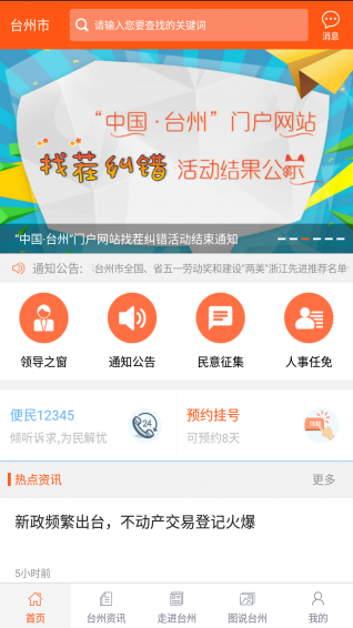 中国台州微门户,能够及时发布中国台州政府网站的信息,内容包含今日台州、便民资讯、统计信息走进台州等。支持微博推送分享、个性化订阅、全文检索等功能,为公众\n提供更方便快捷的服务。