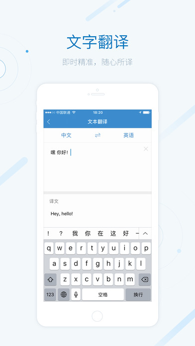 - 文本翻译:输入文字,便可实时获得高质量译文,语句自然流畅。