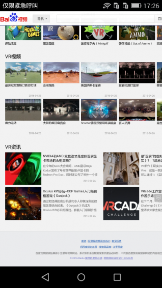 针对内容稀缺、分散、良莠不齐、标准不统一等亟待解决的问题,百度视频隆重推出VR频道,在 VR内容聚合上抢先发力,通过搜索聚合和个性化推荐等模式,聚合了国内最优质的VR内容。百度视频从多个维度为不同类型的用户推荐VR视频、游戏、资讯等海量内容资源,充分洞悉用户的使用习惯,由浅到深,由兴趣到发烧向用户个性化推荐内容,让用户一步步了解、感受、热爱VR。